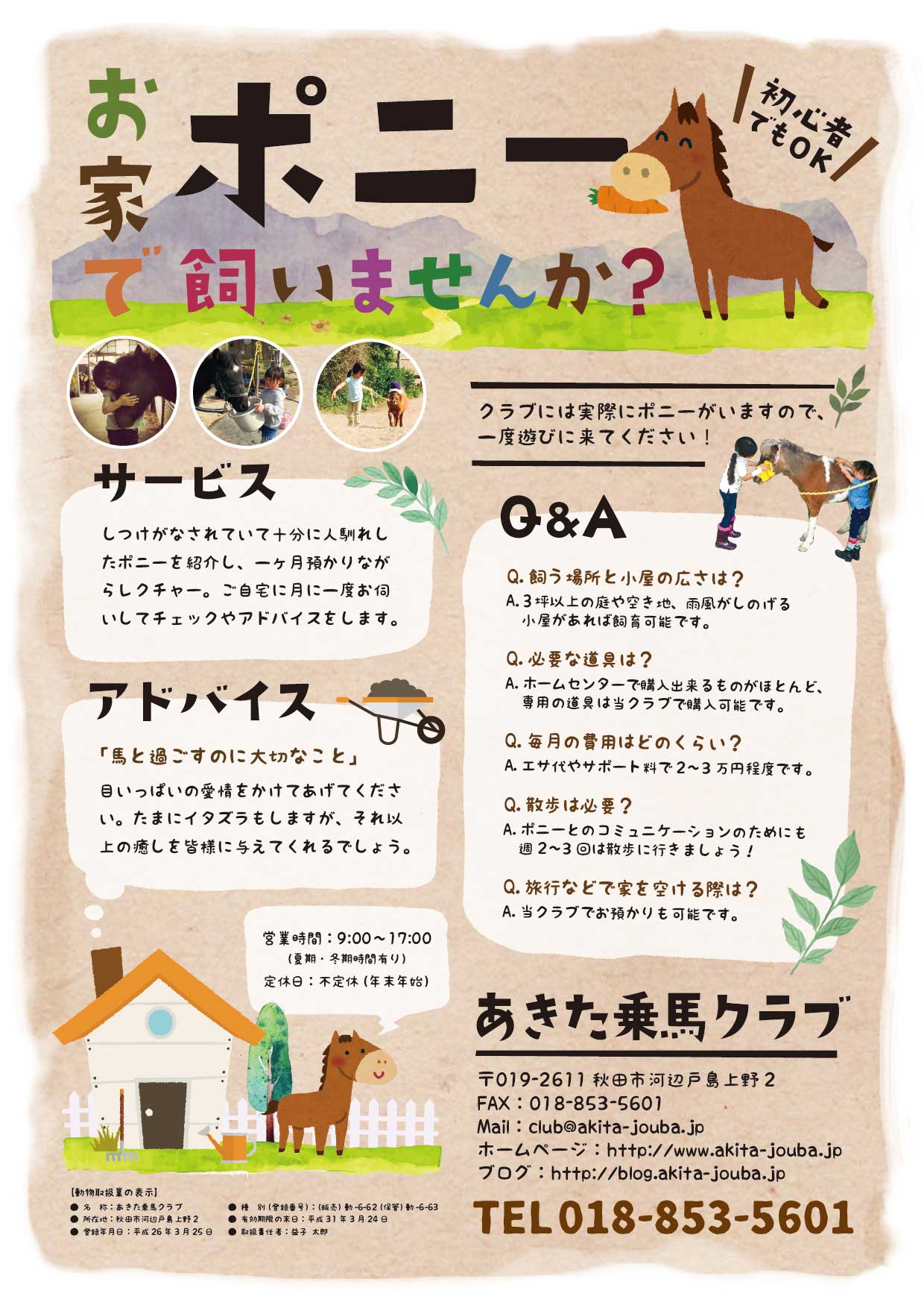 秋田でポニーを飼いたいという方、ポニーの選定から飼育方法の指導・サポートなどお気軽にご相談ください。